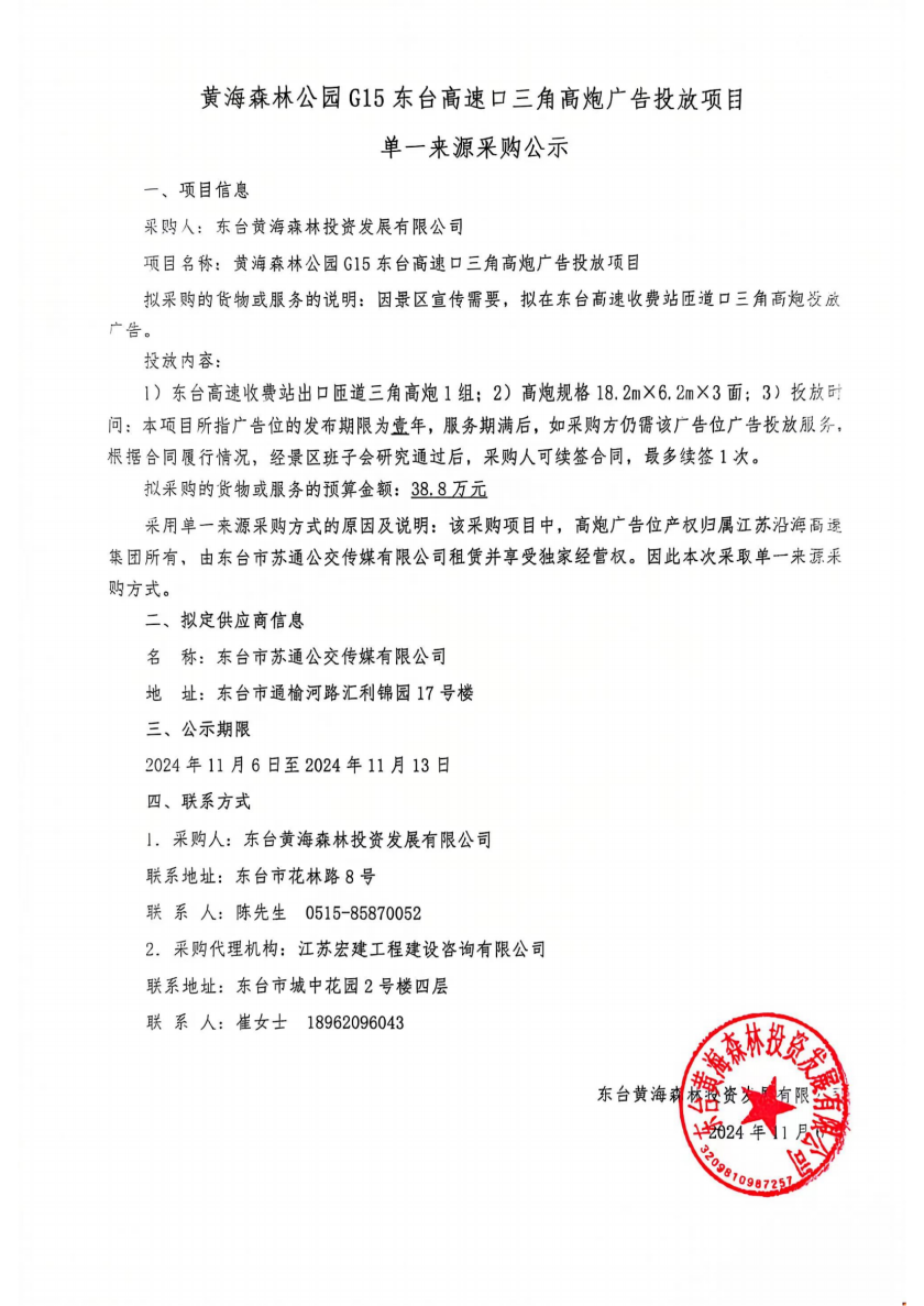 单一来源采购公告(11月6日)