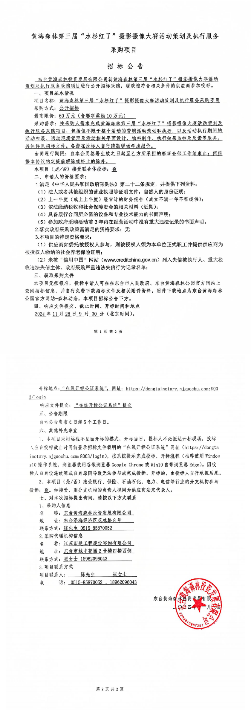招标文件黄海森林第三届“水杉红了”摄影摄像大赛活动策划及执行服务采购项目.doc